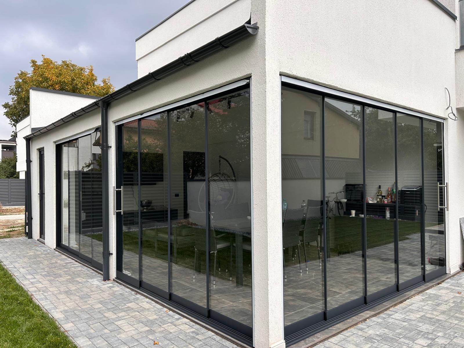 Închiderea terasei cu sticlă glisantă este una dintre cele mai apreciate soluții pentru protejarea spațiilor exterioare, fără a afecta lumina naturală sau deschiderea vizuală către exterior.