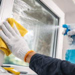 Curățarea foliei de protecție și a urmelor de adeziv de pe geamul termopan